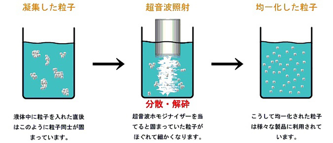 超声波均质机的主要特征是它不产生物理冲击力而是撞击颗粒等,因此终粒径相对球形,因此可用于分散的终过程或粒径分布系统中。它常用于预处理。